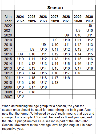 For the Spring / Summer seasons, OSA is represented by the following teams: