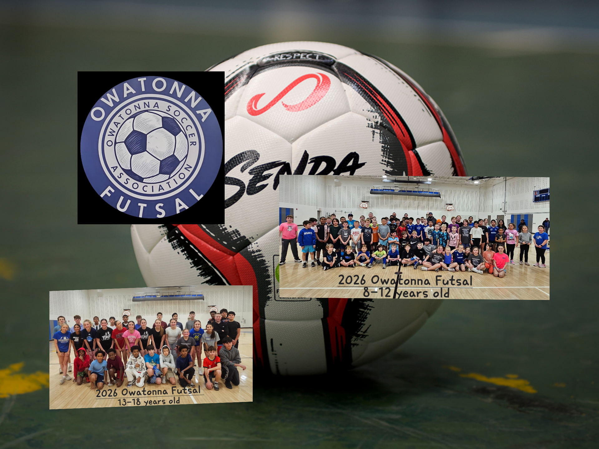 Futsal (indoor soccer) is a winter program that takes place at the Owatonna Middle School. In 2026, the fee is only $25 for the 15-session season which helps to offset the cost of the facility.